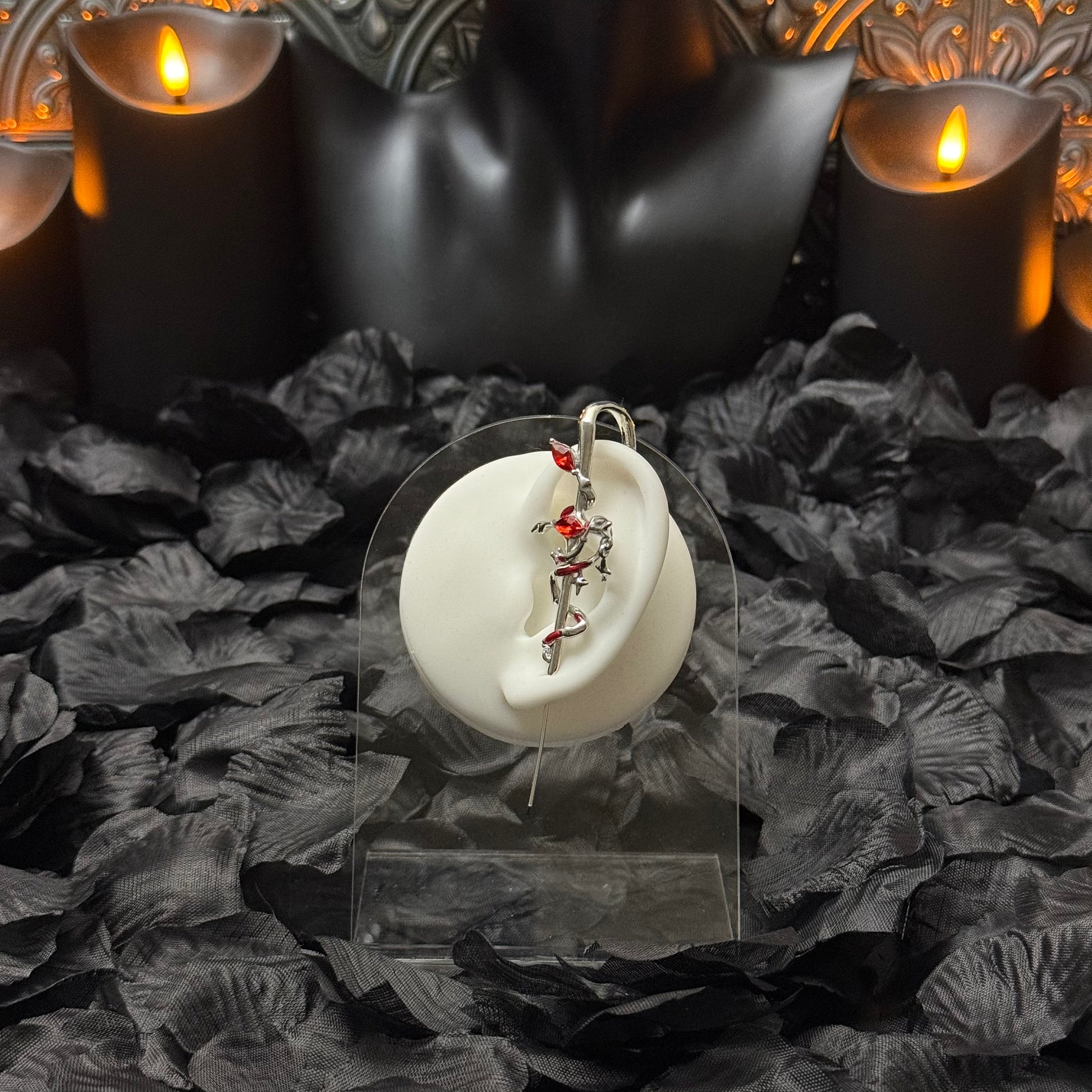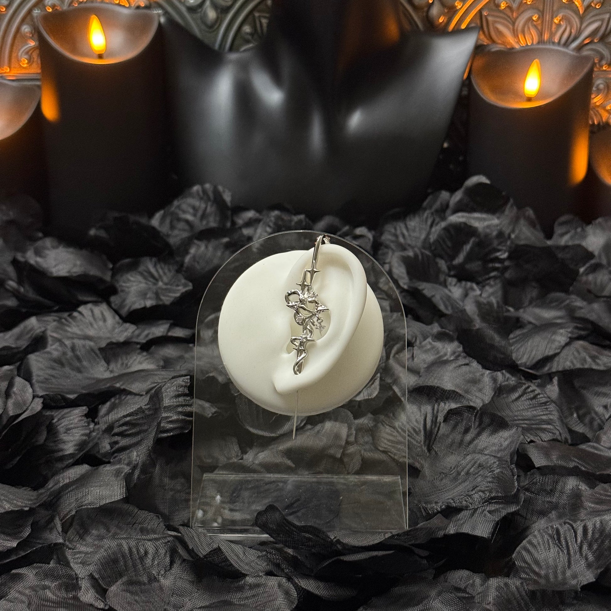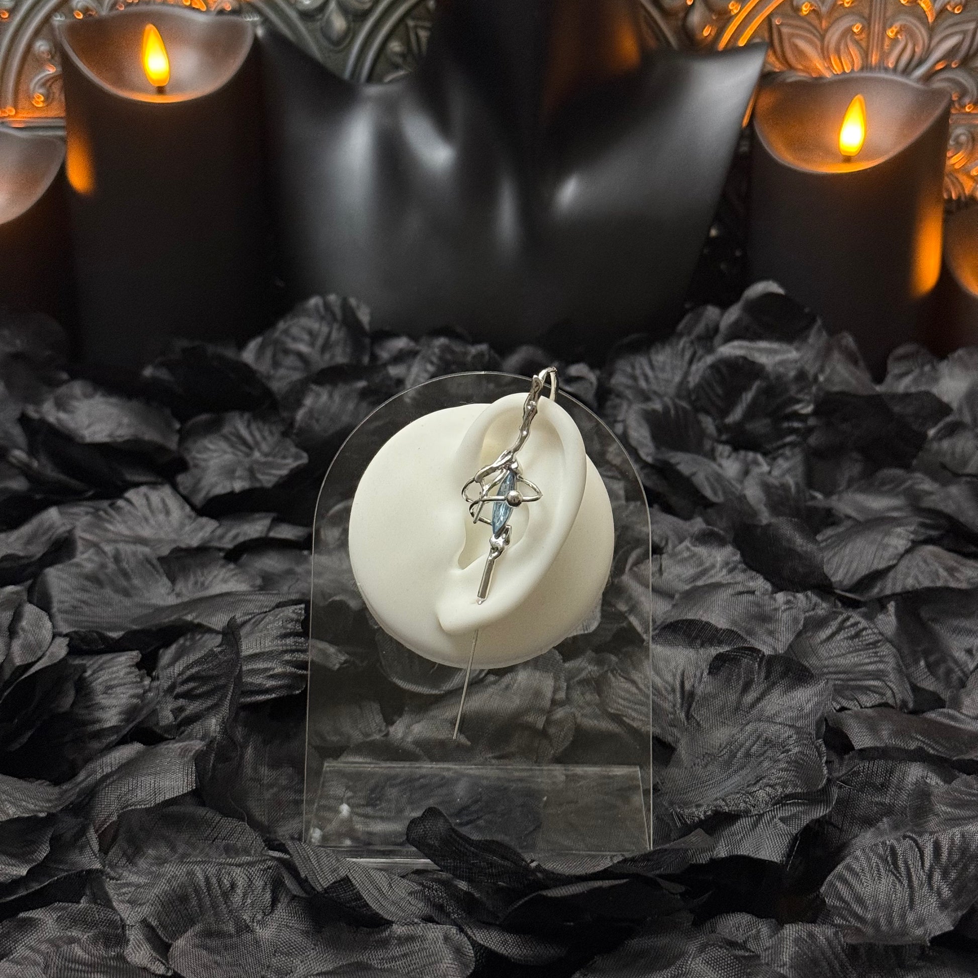 Gently insert the earring as you would any other then hook the top around your ears helix. Adjust to the position you like, style with your favorite pieces, and wear comfortably from dusk to dawn!